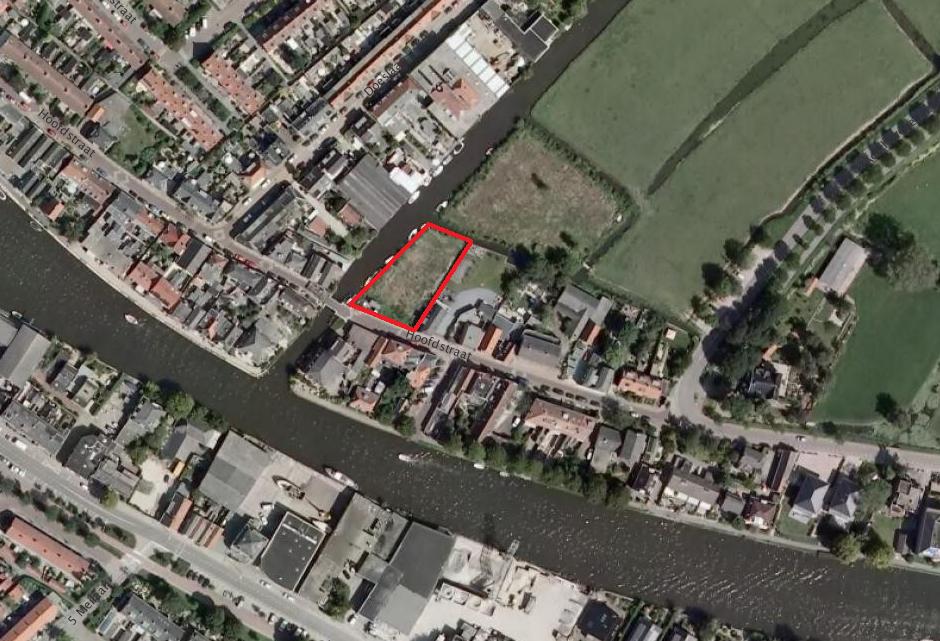 Initiatiefnemer ziet daarbij mogelijkheden om het hele perceel te ontwikkelen naar woningbouw. In totaal wil initiatiefnemer twee-onder-één-kapwoningen en een vrijstaande woning realiseren (in totaal 3 woningen), incl. parkeren in het plangebied (2 parkeerplaatsen per woning), met bij de woningen de mogelijkheid tot het aanleggen van een bootje. De woningen aan de Hoofdstraat worden voorzien van een maximum goot- en bouwhoogte van respectievelijk 6 m en 10 m. De goot- en bouwhoogte van woning achter op het perceel is maximaal 3,5 m en 7 m. De navolgende afbeelding geeft een impressie van de beoogde situatie.